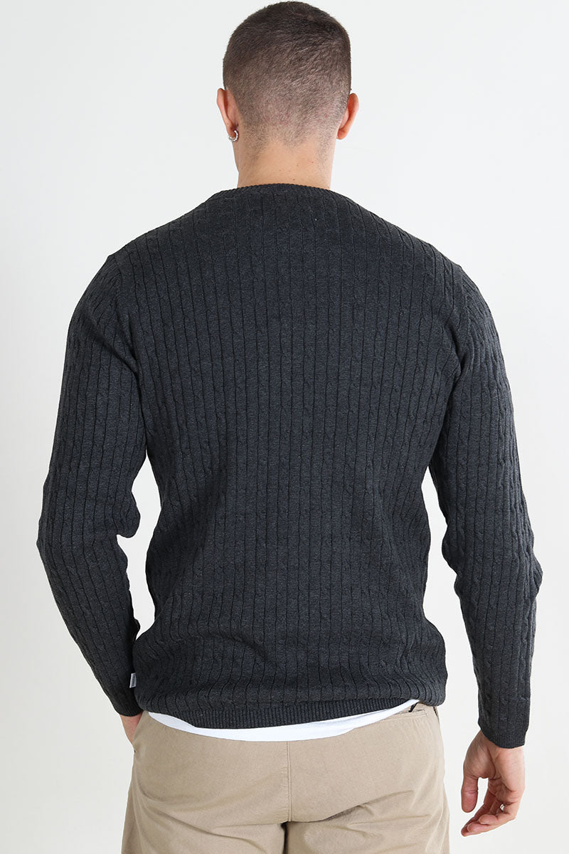 Cable Cotton Knit Charcoal Mix