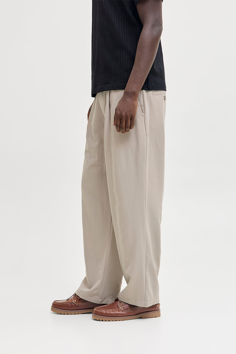 Bill Bamford Pleated Relaxed Fit Chino Mourning Dove Stripe