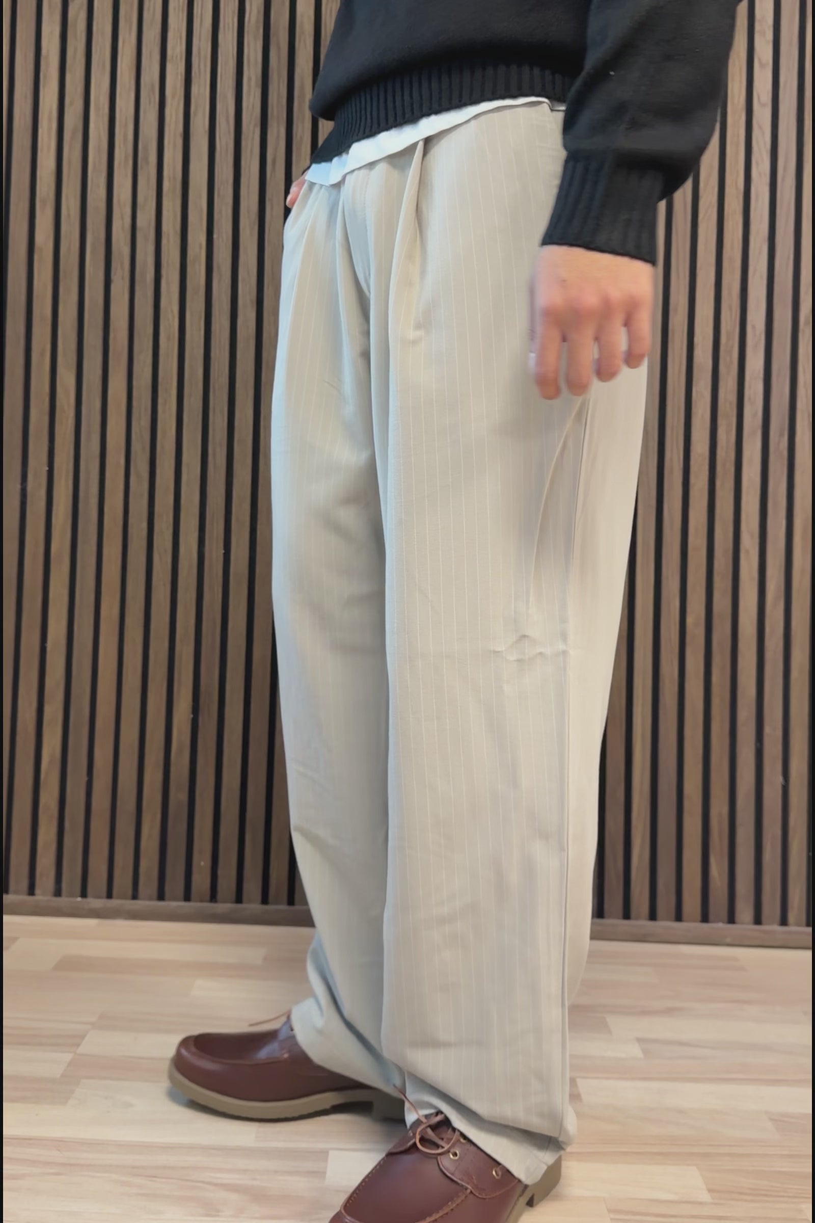 Diese Pleated Chino-Hose ist eine zeitlose Wahl, die einen lässigen und gleichzeitig eleganten Look vereint. Das Modell verfügt über eine hohe Taille und eine breite, bequeme Passform, die den Oberschenkel umschließt und eine lockere Beinöffnung bietet. Der gewebte Stoff ist strapazierfähig und behält seine Form ohne auszuleiern, was der Hose ein robustes und elegantes Erscheinungsbild verleiht. Die Farbe „Mourning Dove“ sorgt für einen neutralen und vielseitigen Look, der zu vielen verschiedenen Outfits passt.