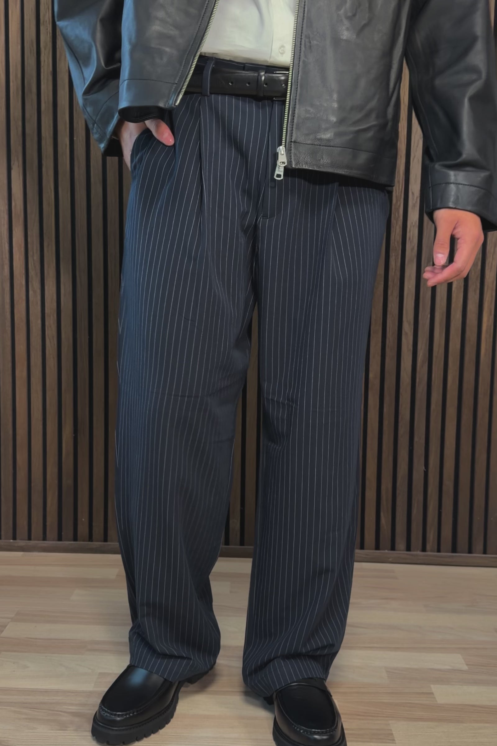 Bill Bamford Pleated Relaxed Fit Chino Dark Navy Stripe