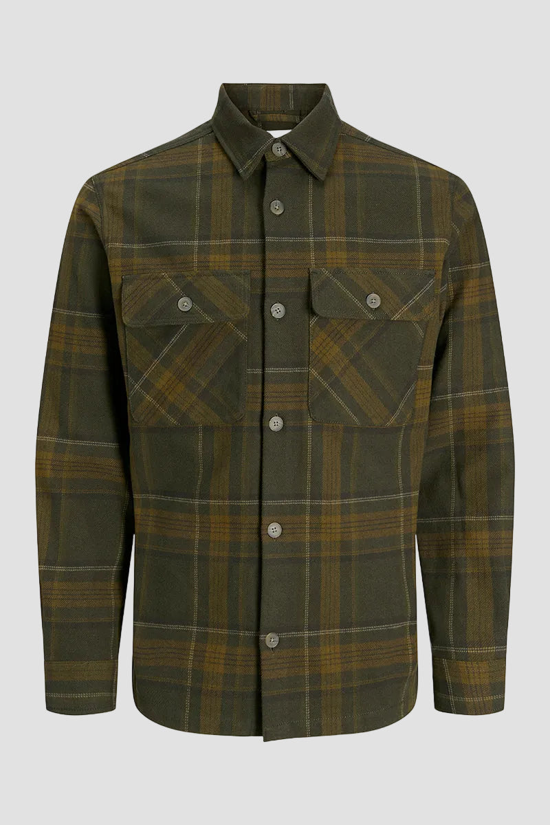- Dunkelgrünes langärmeliges kariertes Overshirt