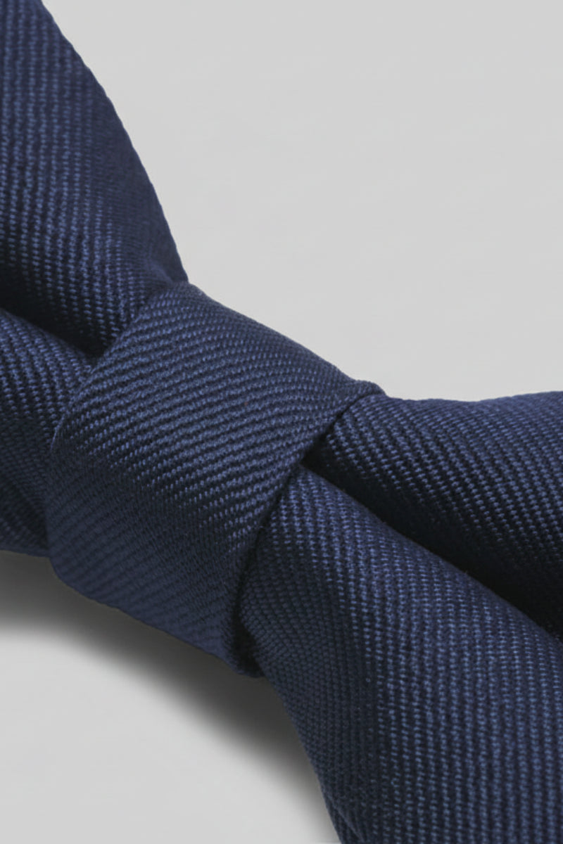 Eine strukturierte Fliege aus robustem, gewebtem Stoff, die sich perfekt für formelle Anlässe eignet. Das Design setzt auf klare Linien und einen klassischen Look in der Farbe Navy Blazer, die vielseitig kombinierbar ist. Die Fliege besteht zu 100 % aus recyceltem Polyester, was sie nachhaltig und umweltbewusst macht.