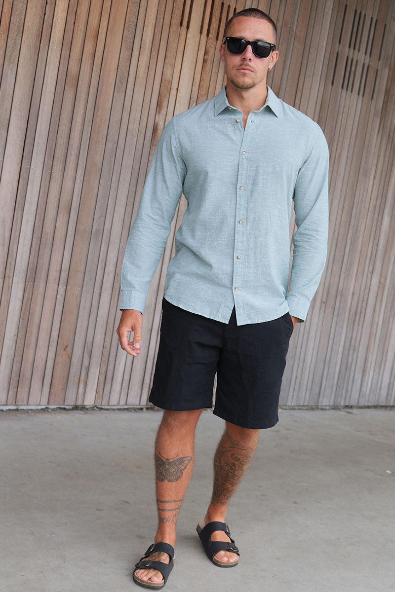 3. Das Hemd in die Hose stecken und mit einem Gürtel in Szene setzen oder aber locker über der Hose tragen