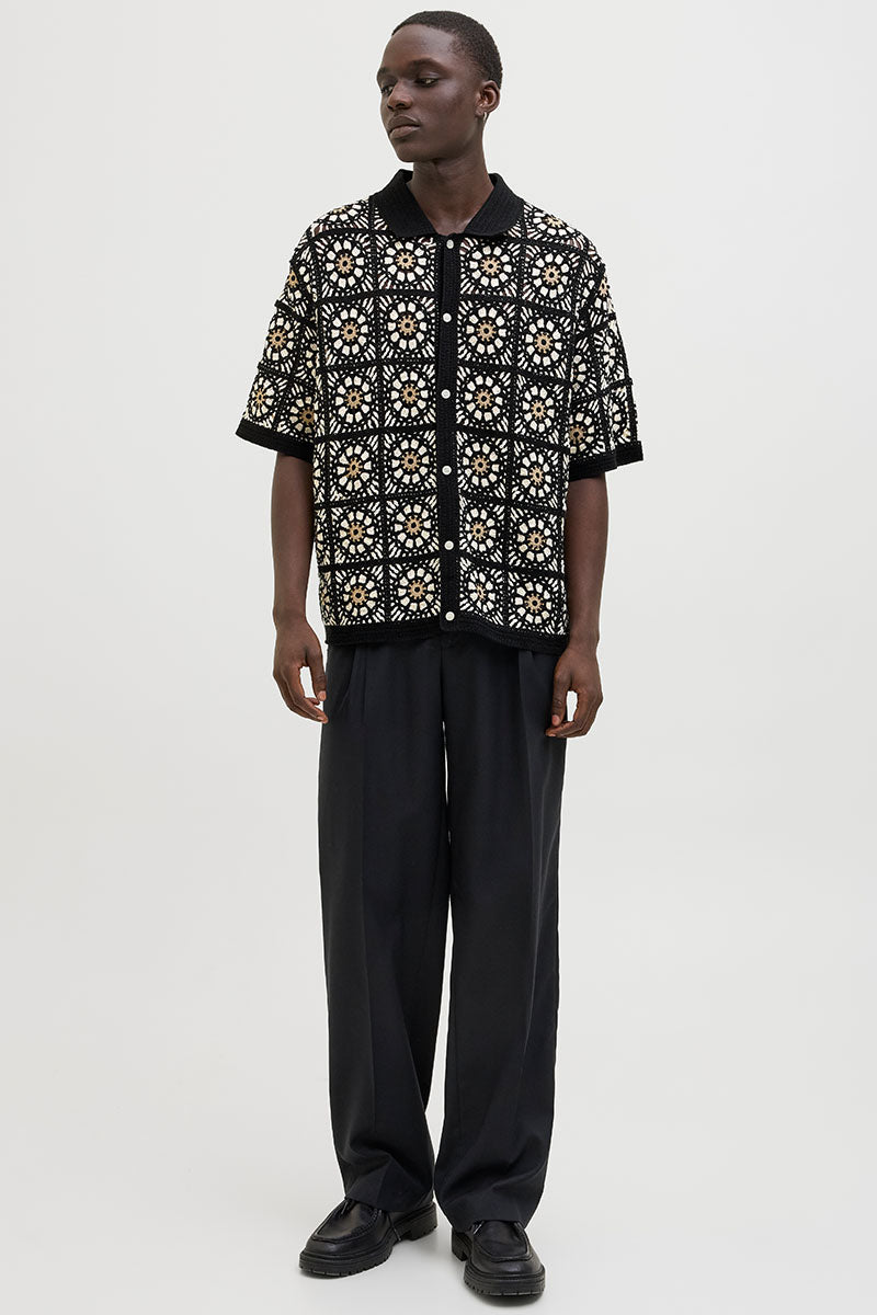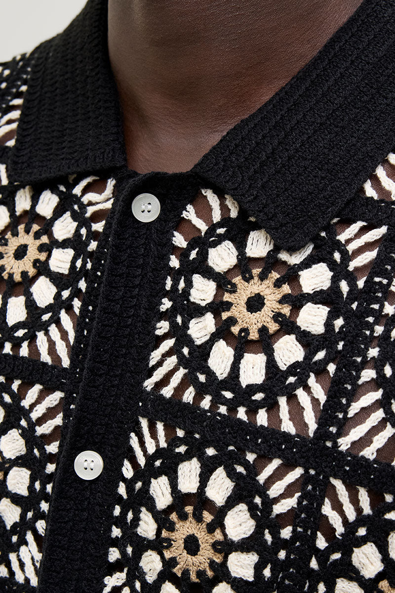 Cartagena Crochet Knit Polo Black