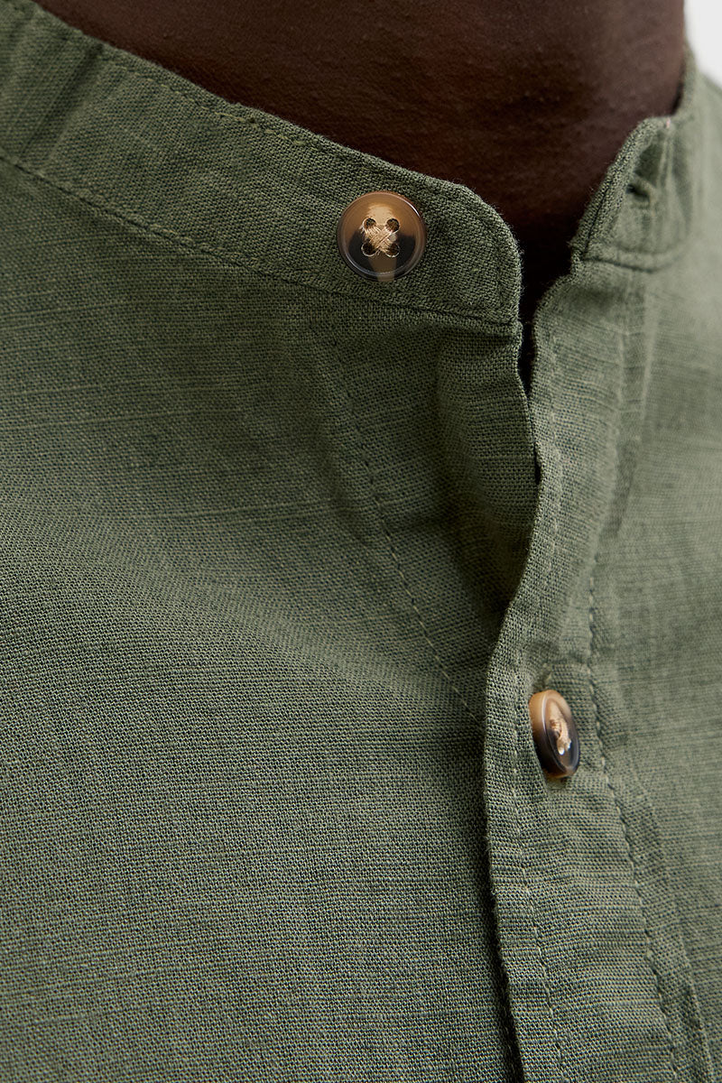- Dunkelgrünes langärmliges Leinenhemd im Comfort Fit