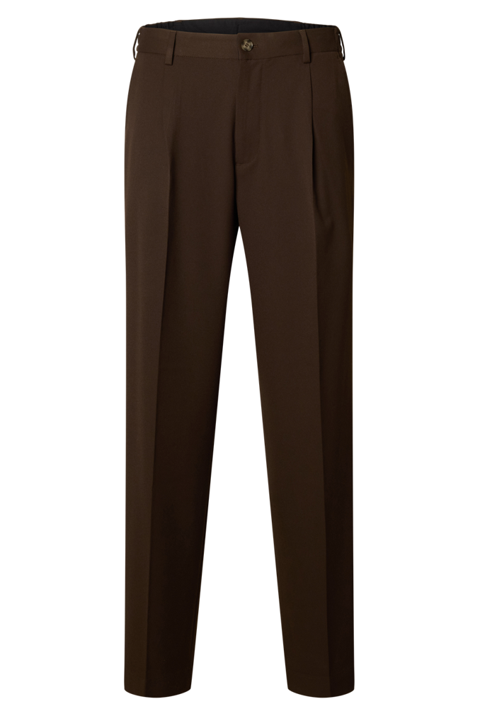 Diese locker geschnittene Hose überzeugt mit ihrem zeitlosen Look, der perfekt für formelle Anlässe geeignet ist. Der angenehme Materialmix macht sie nicht nur bequem, sondern auch nachhaltig, da der Hauptstoff mindestens 50 % recyceltes Polyester enthält. Verschlossen wird die Hose mit einem klassischen Knopf- und Reißverschluss, während die nicht funktionalen Gesäßtaschen das schlichte Design unterstreichen.