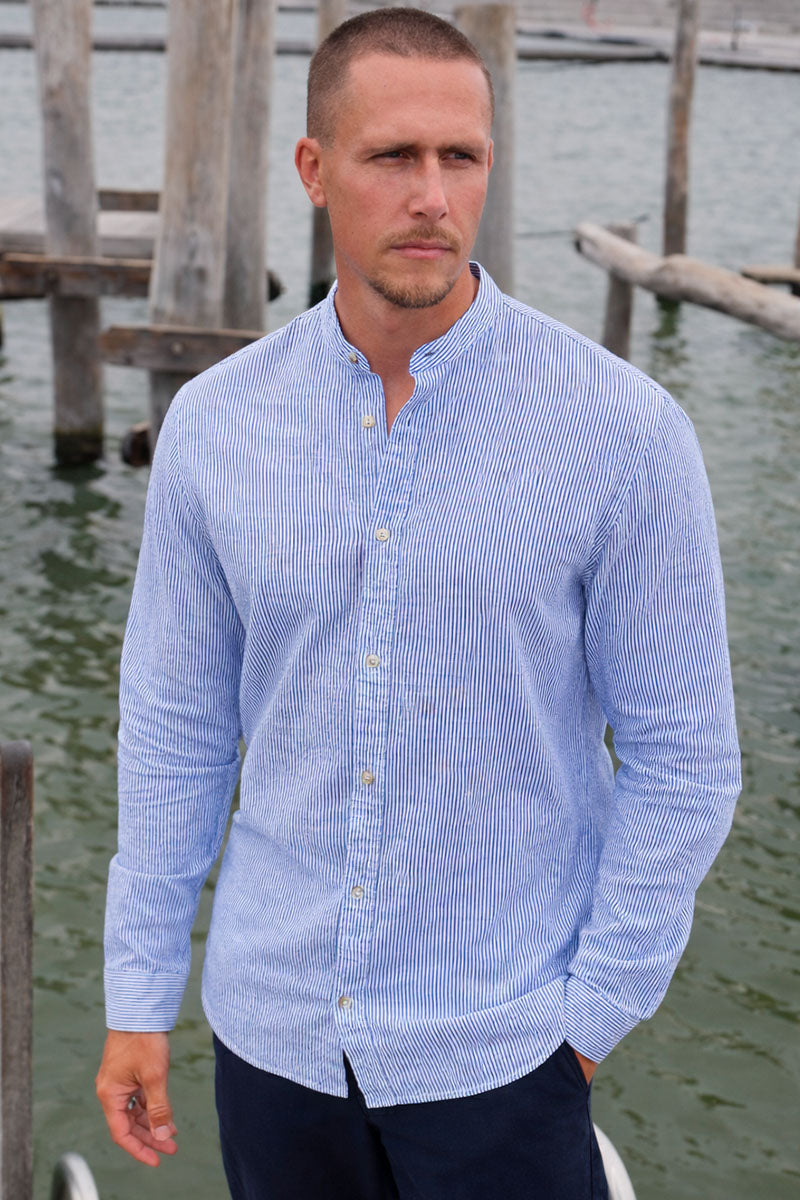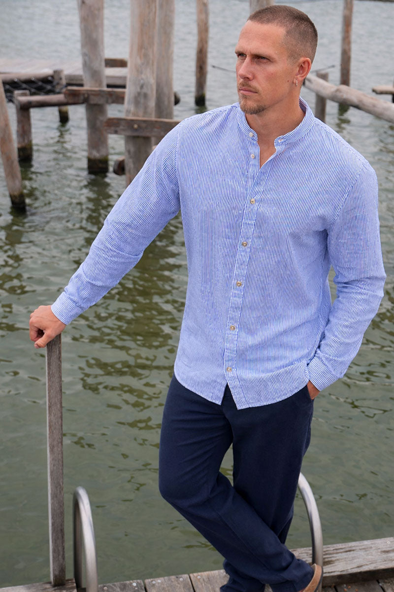 Style-Name: JJESUMMER LINEN BLEND BAND SHIRT L/S SN