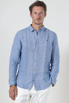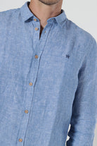 • Hellblaues langärmeliges Leinenhemd in regulärer Passform.