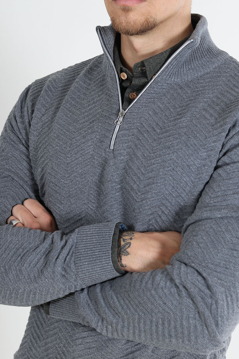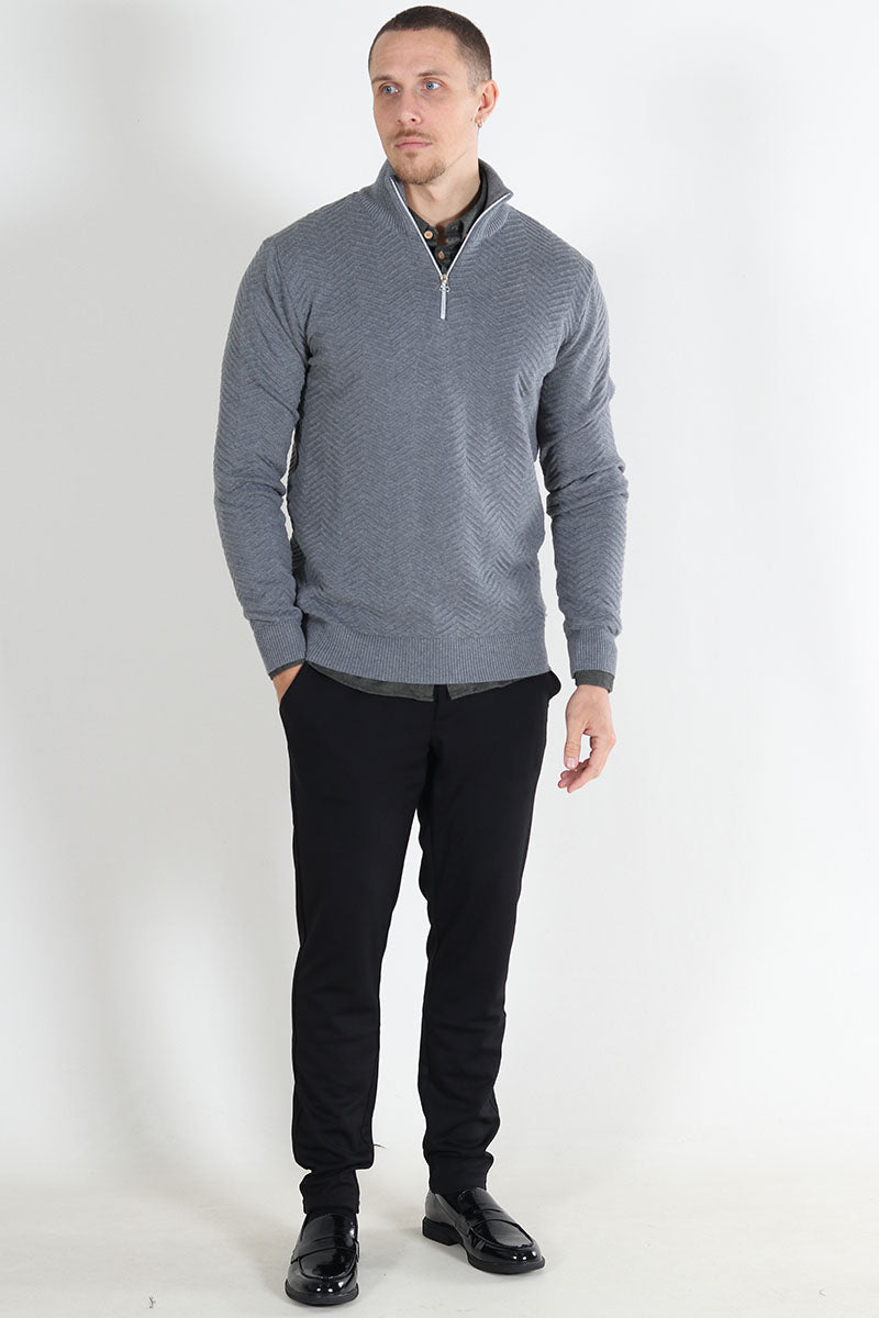 Carlo Cotton half zip knit Lt Grey Mix