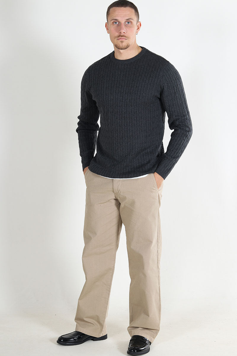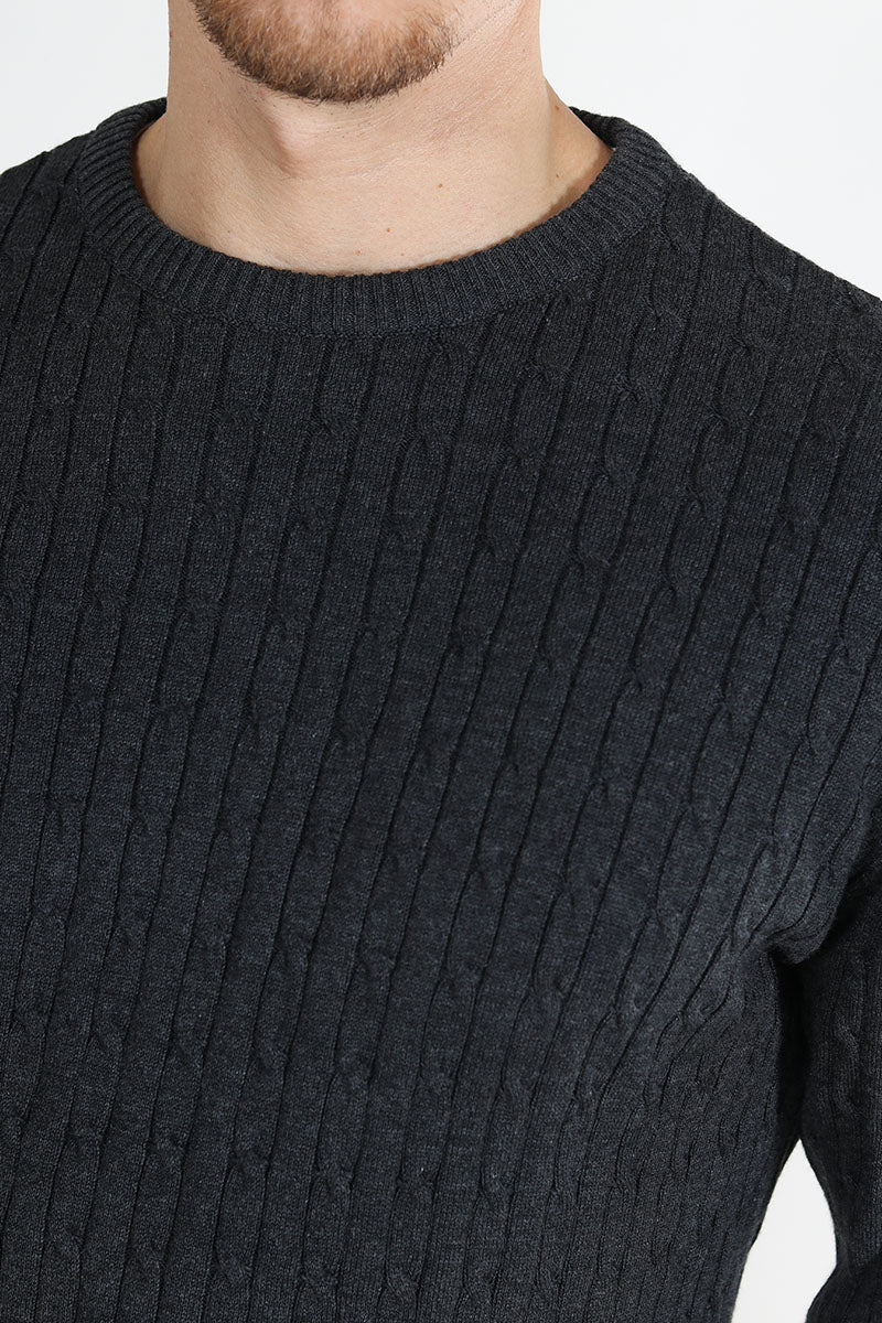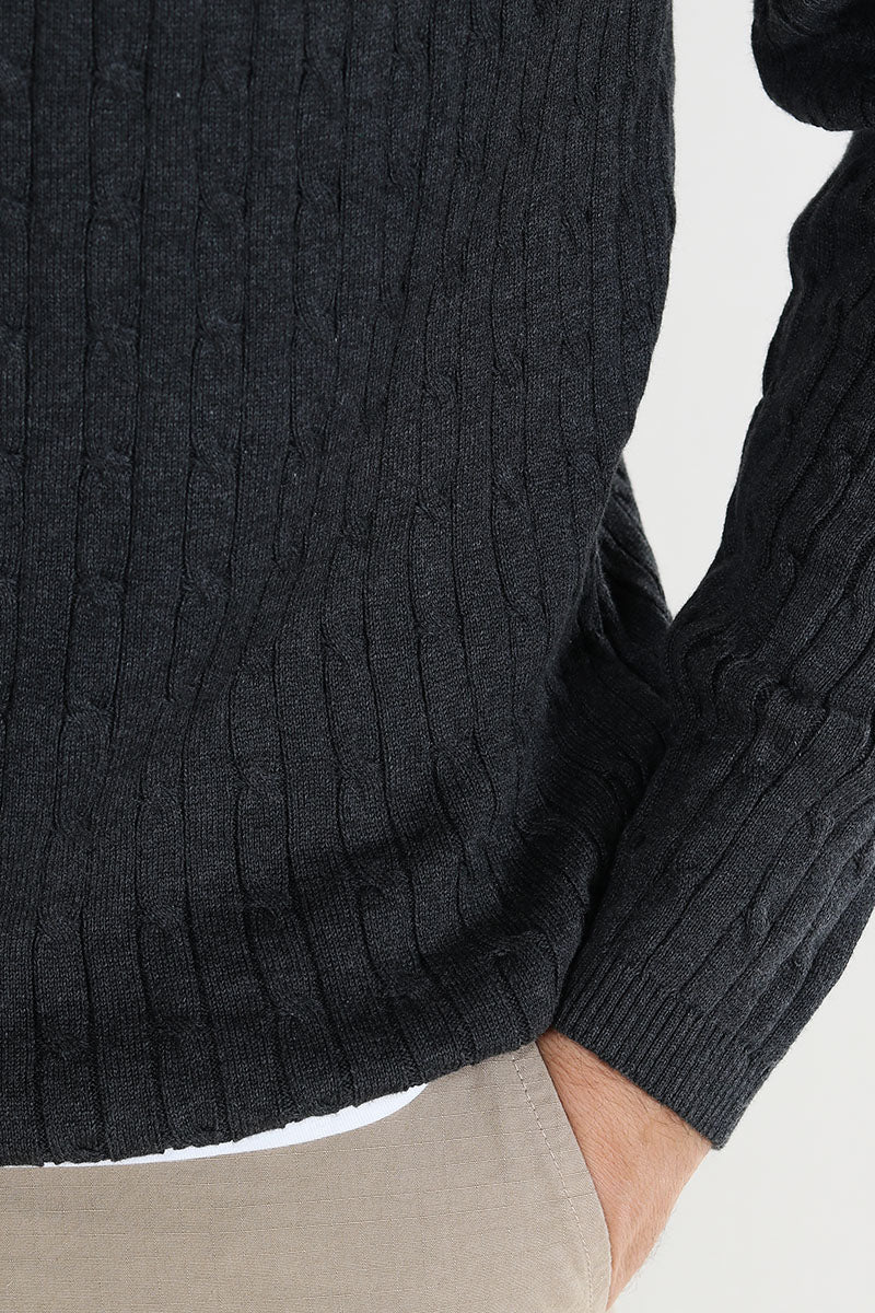Cable Cotton Knit Charcoal Mix