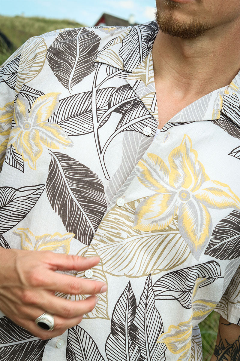 Relax New Linen Hemd SS Resort Fog Leaves