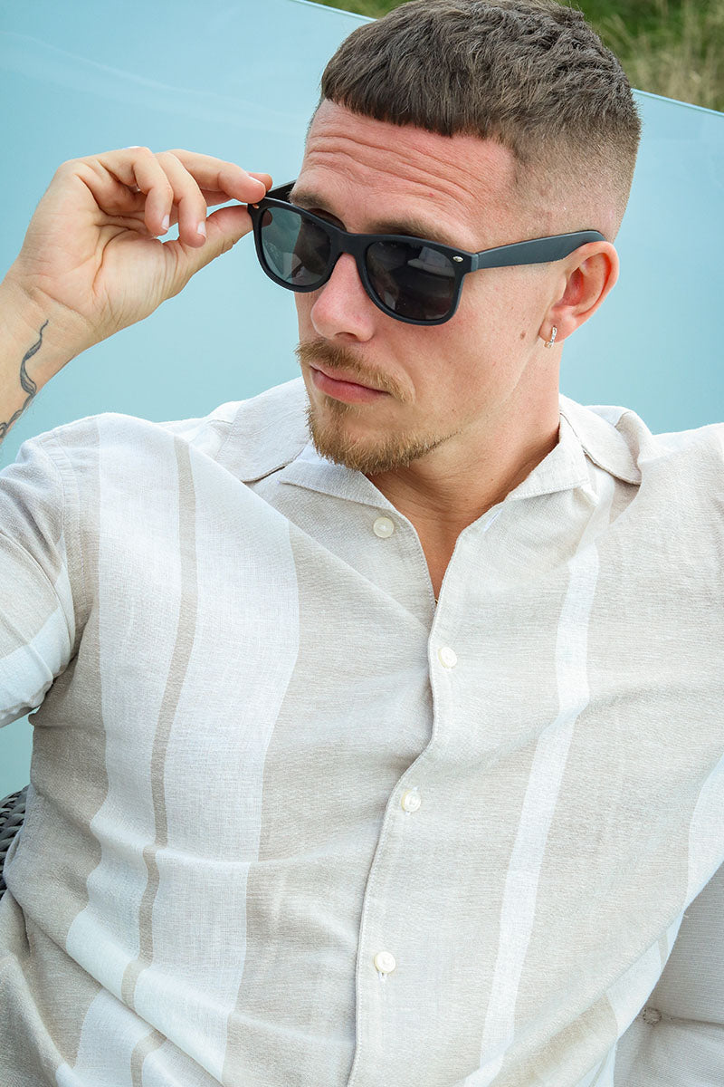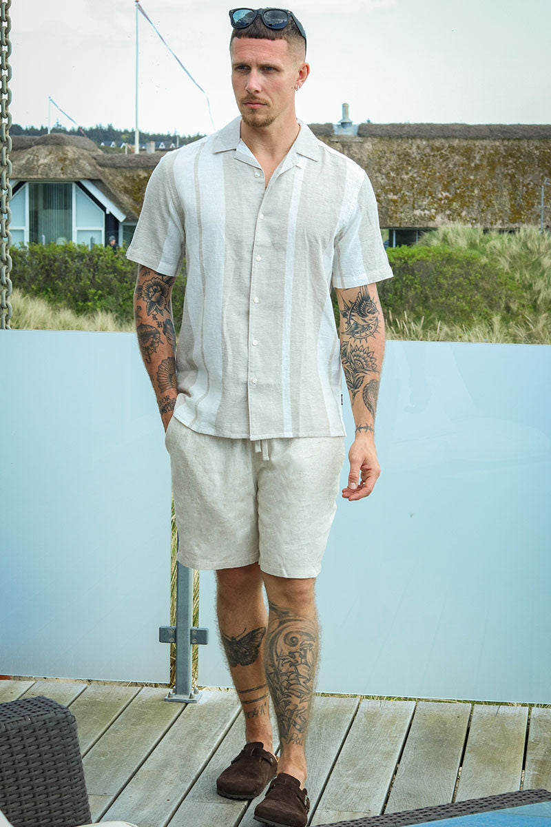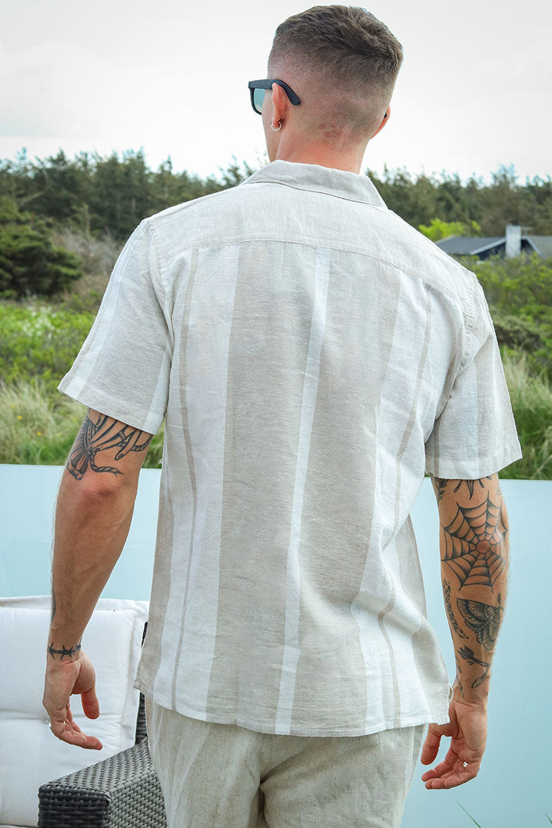Caiden SS Stripe Linen Resort Hemd Vintage Khaki