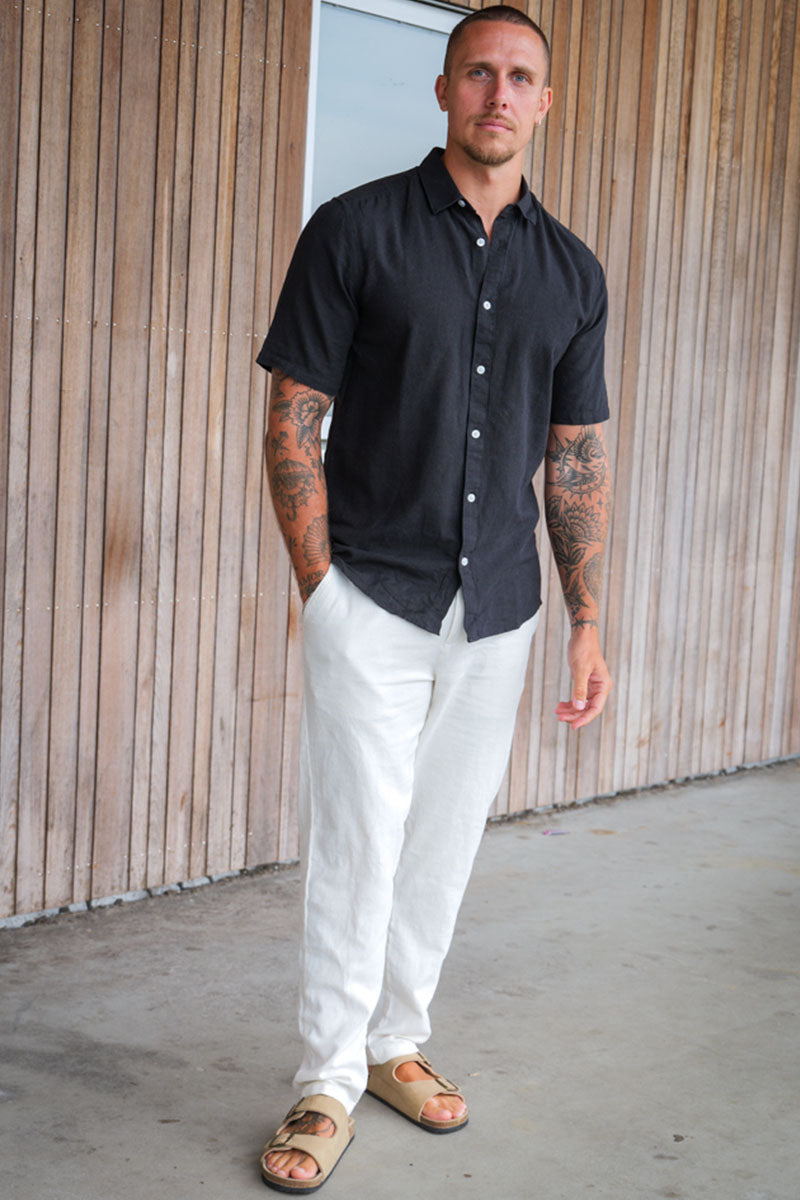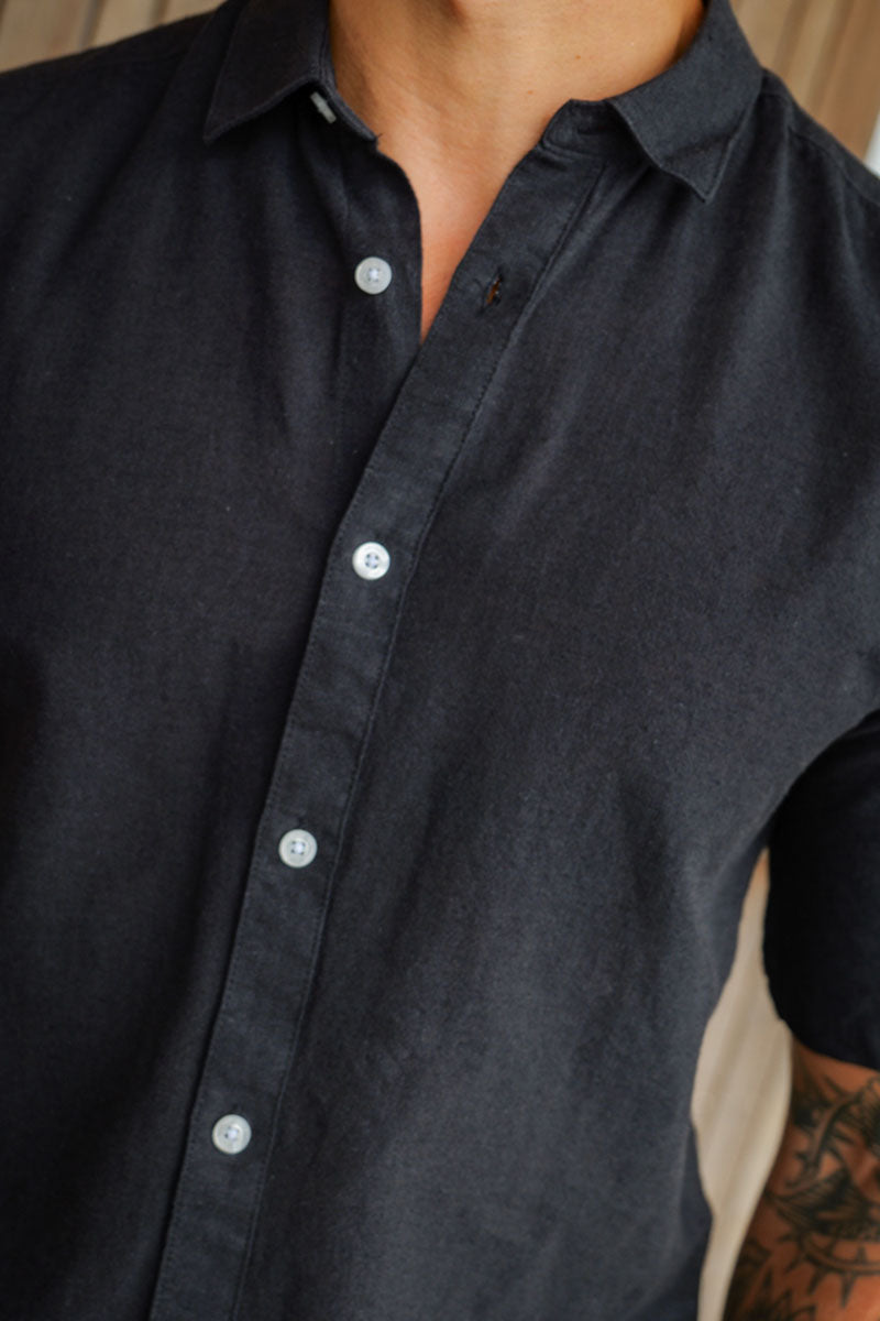 Caiden SS Linen Hemd Black