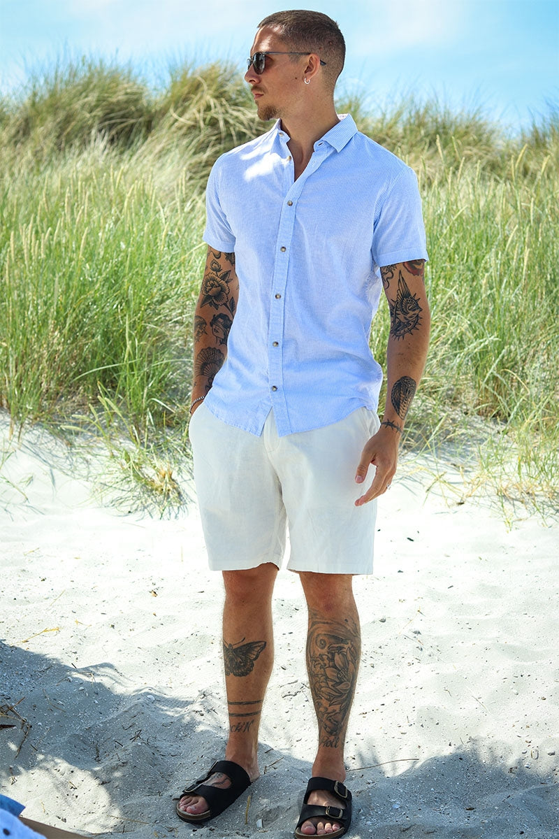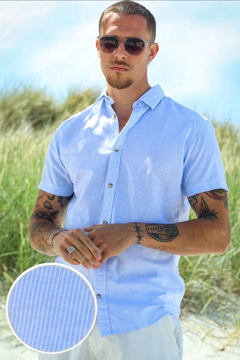 Unsere Leinen-Kollektion hier bei 2trendy kann mit Leinen-Modellen für jede Gelegenheit dienen, eignet sich aber besonders für festliche Sommerveranstaltungen, Sommerhausausflüge oder den Urlaub im Süden. Ob es sich um eine lässige Gartenparty, einen klassischen Grillabend oder einen Ausflug zum Strand handelt - mit Leinen-Bekleidung aus unserer Leinen-Kollektion für Herren sind Sie garantiert immer gut ausgestattet! Probieren Sie zum Beispiel ein langärmeliges Leinenhemd zusammen mit unseren Leinenhosen und einem Paar sommerlicher Sandalen. Sie können es auch ganz leger halten und eines der fantastischen, kurzärmeligen Leinenhemden mit unseren Leinenshorts kombinieren. Es gibt zahlreiche Kombinationsmöglichkeiten - allen gemeinsam ist, dass Leinen als Stoff unglaublich bequem, temperaturregulierend und stilvoll ist. Was die Farbauswahl angeht, haben wir alles, was Sie sich in Leinen vorstellen können, egal welchen Stil Sie bevorzugen - einfarbig, gestreift, gemustert oder in klassischen Erdtönen. So haben Sie immer genügend Auswahl, um Ihren eigenen Stil zusammenzustellen, egal ob Sie eher einen entspannten oder ausgefallenen Look bevorzugen.