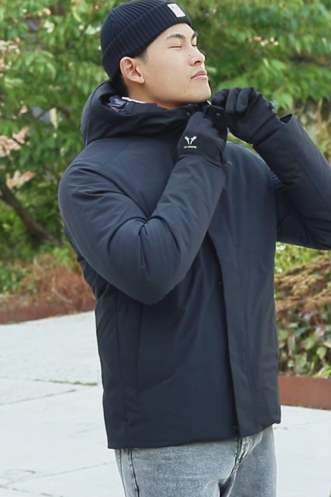 - Hergestellt aus einem bequemen Stretchmaterial mit synthetischer Faserdämmung für Wärme.