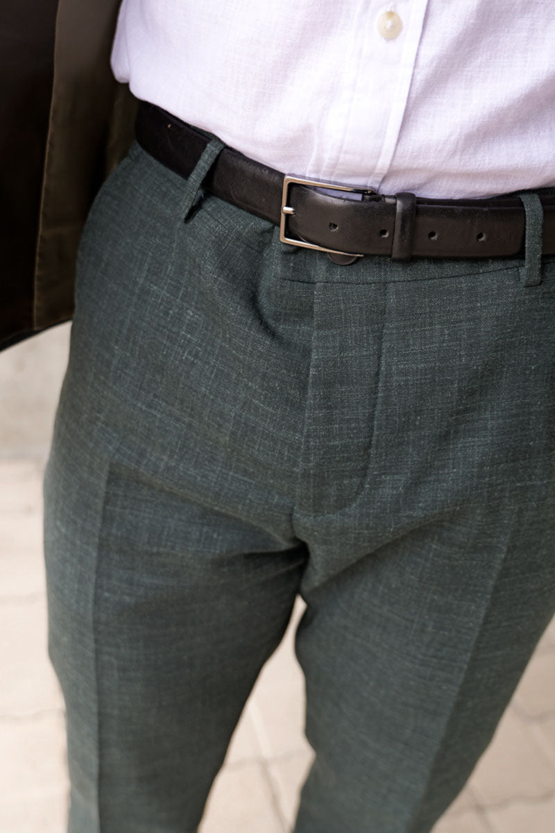 Slim Oasis Linen Pants Dark Green