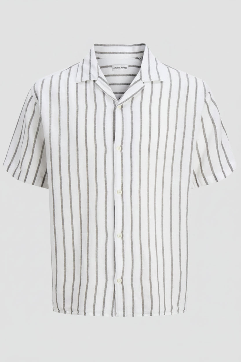 Dieses Hemd besticht durch seinen entspannten Schnitt und den klassischen Resort-Kragen, der jedem Sommeroutfit eine stilvolle Note verleiht. Das kurzärmelige Modell aus einem robusten, gewebten Stoff bietet eine angenehme Leichtigkeit und formstabile Eigenschaften, da es nicht wie gestrickte Stoffe dehnt. Die dezente Streifenoptik in einem gedämpften Olivton sorgt für einen modernen Look, der vielseitig kombinierbar ist.