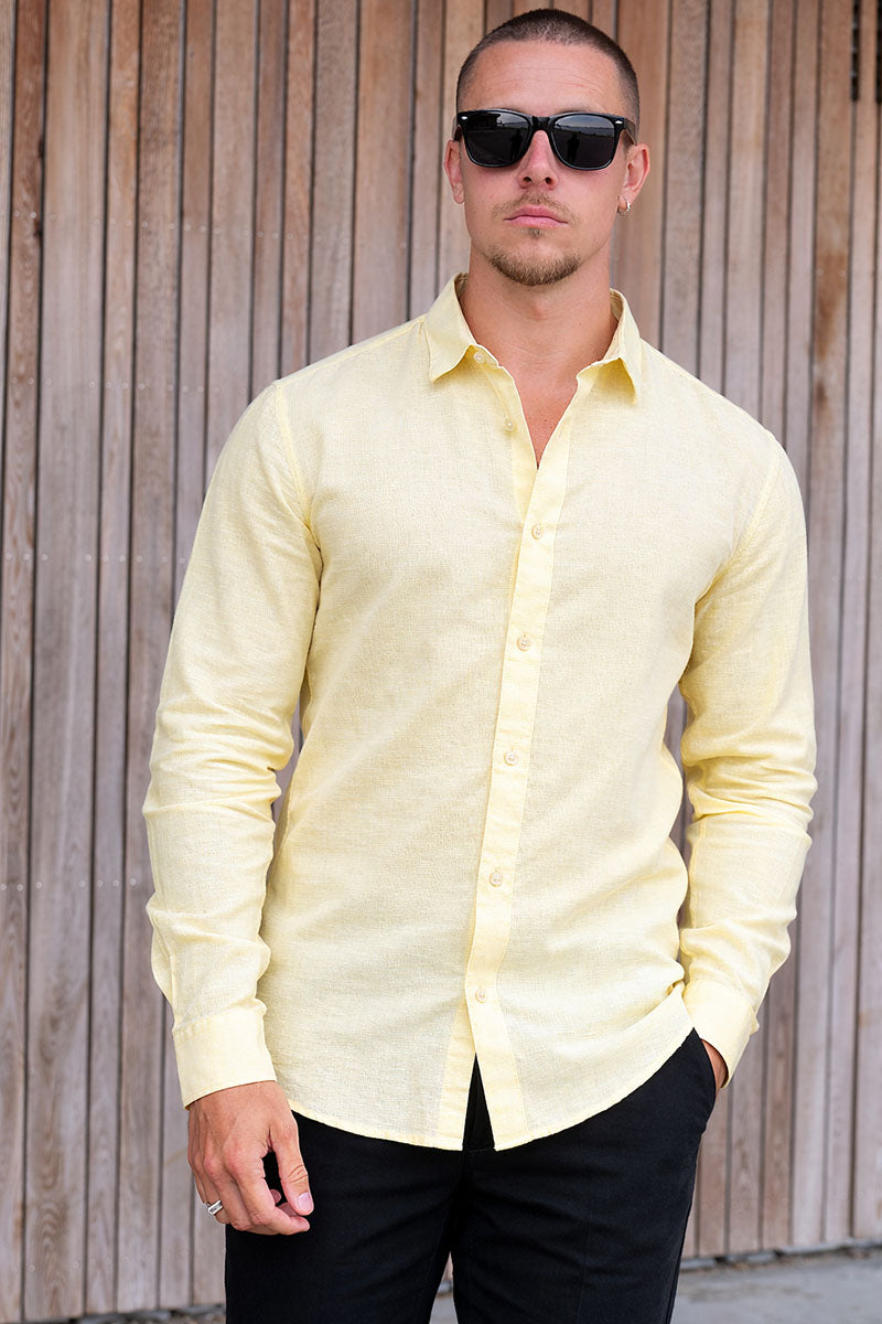 Caiden Life LS Solid Linen Blend Shirt Pastel Yellow