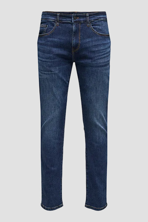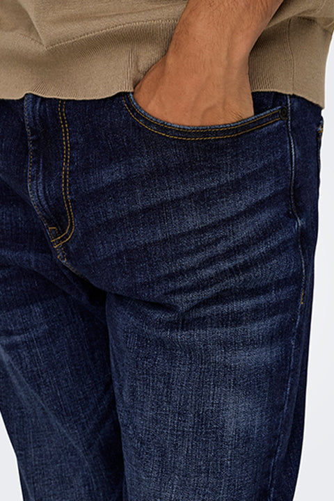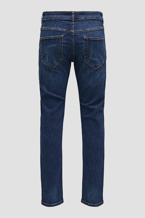 - Dunkelblaue Jeans mit Reißverschluss im Slim Fit