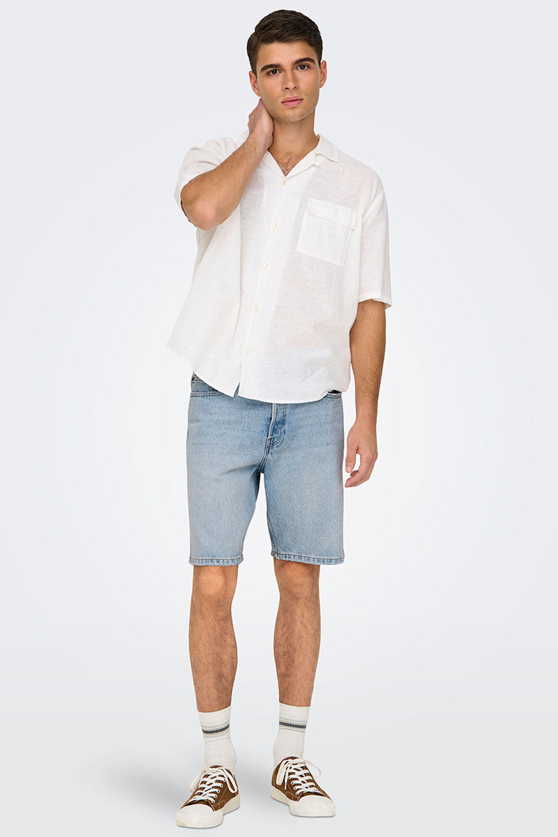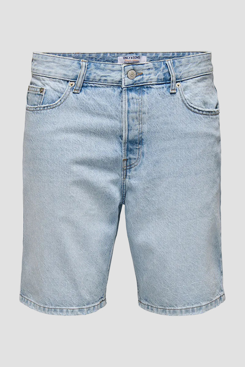 Edge Straight Fit Denim Shorts Light Blue Denim