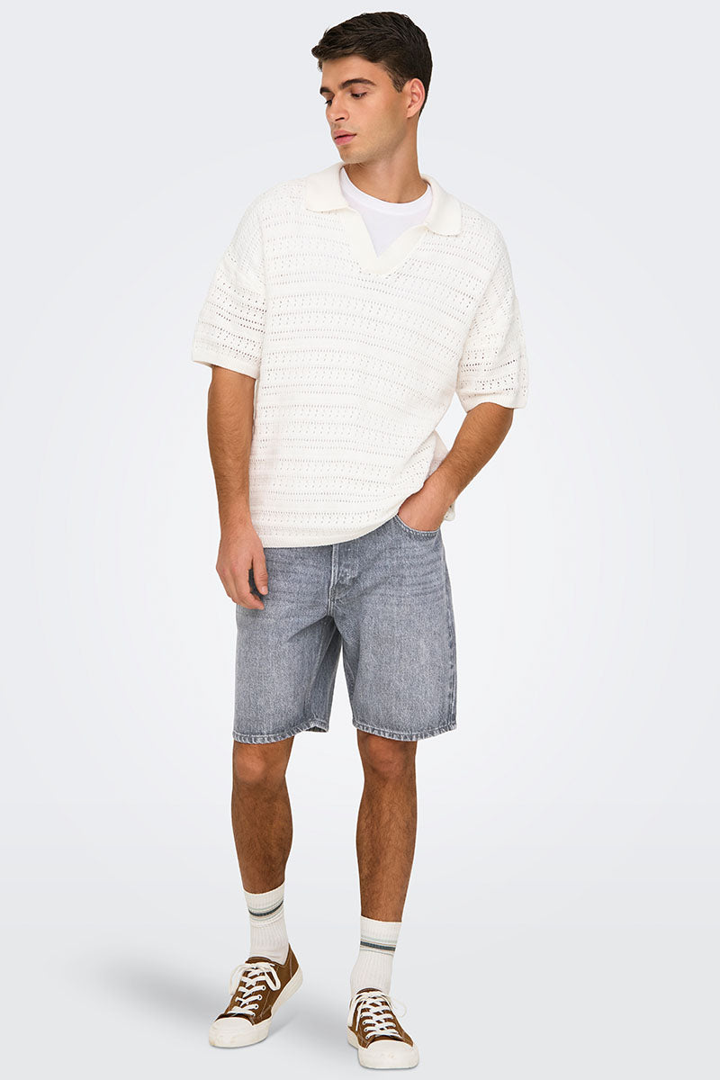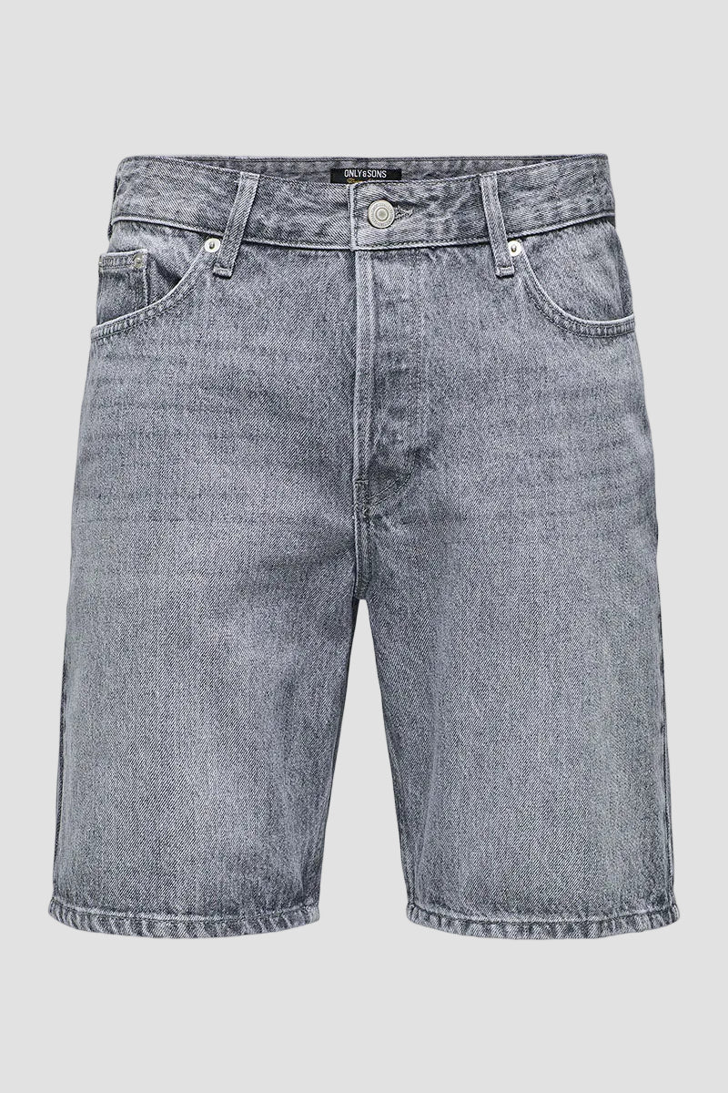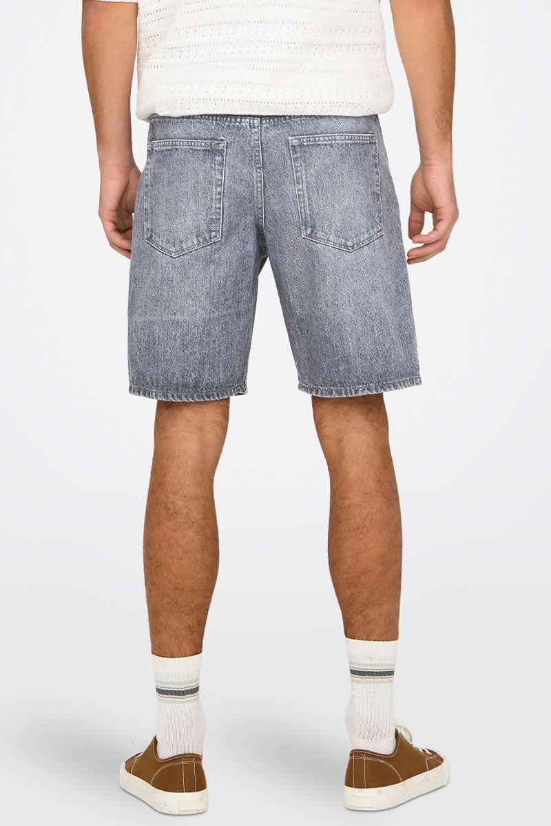 Edge Straight Fit Denim Shorts Medium Grey Denim