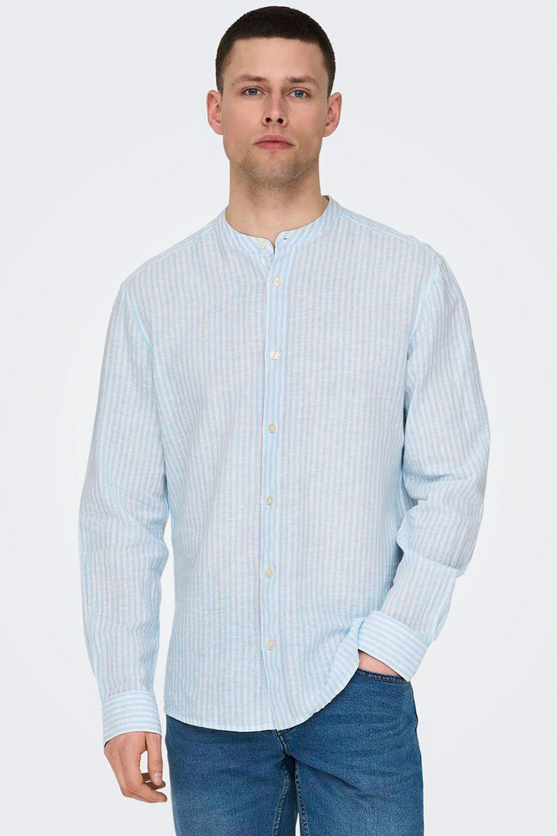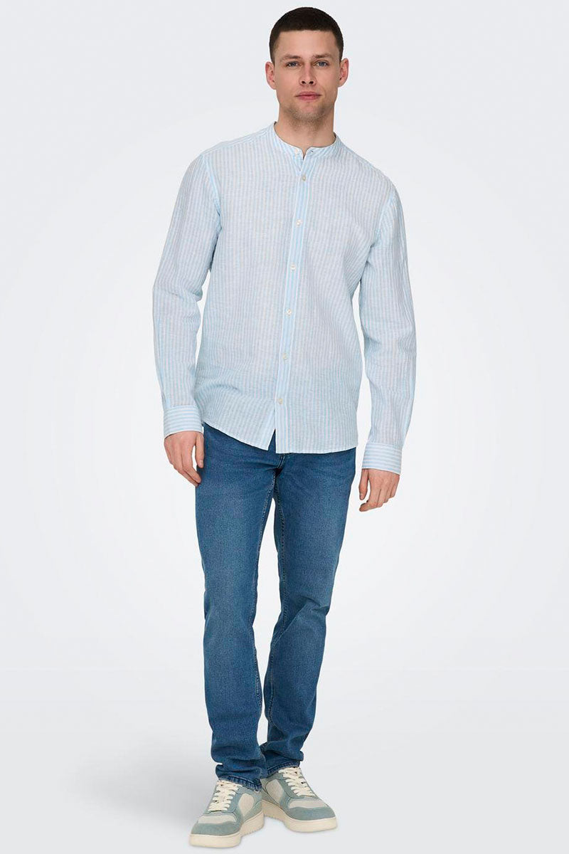 Caiden LS Mao Stripe Linen Hemd Cashmere Blue