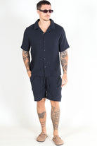 Kyle Regular Pas SS Hemd Dark Navy