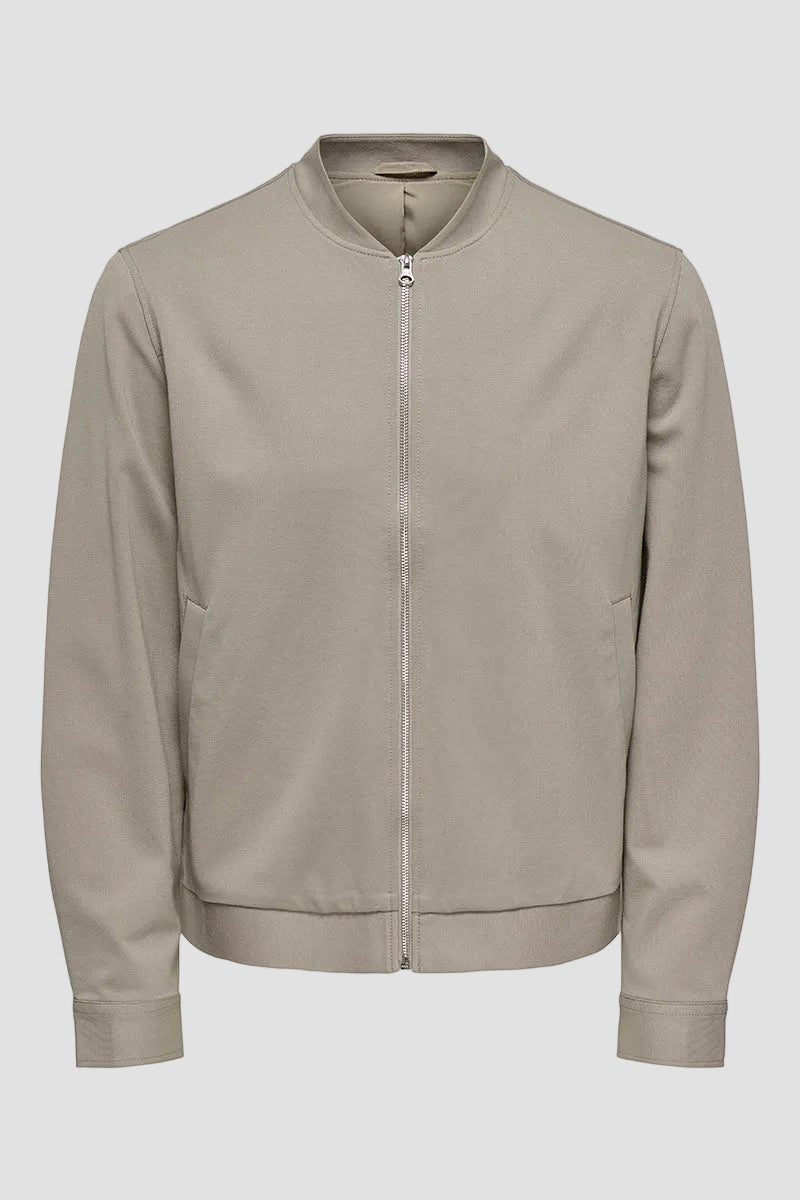 - Beige langärmlige Bomberjacke