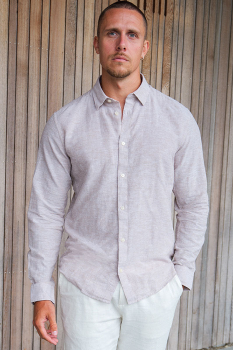 Caiden LS Linen Hemd Chinchilla