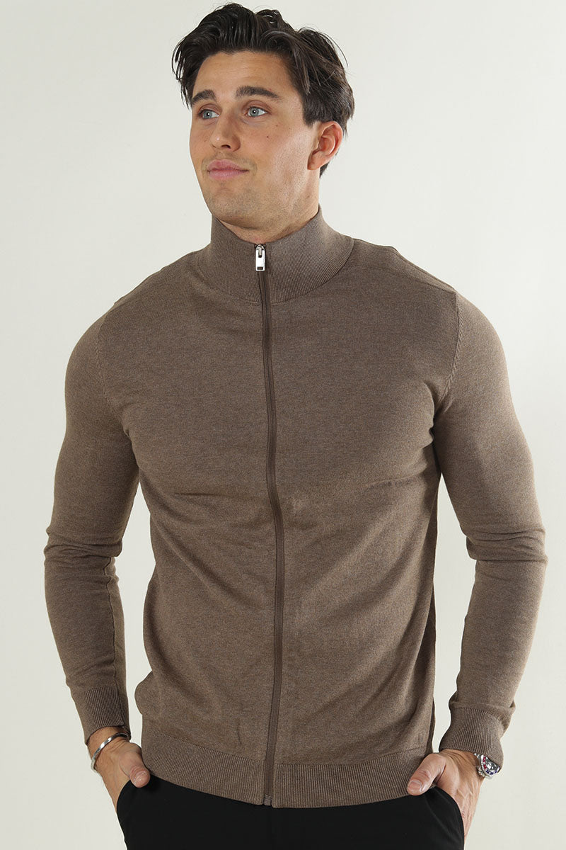BERG FULL ZIP CARDIGAN Teak Melange