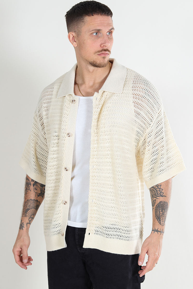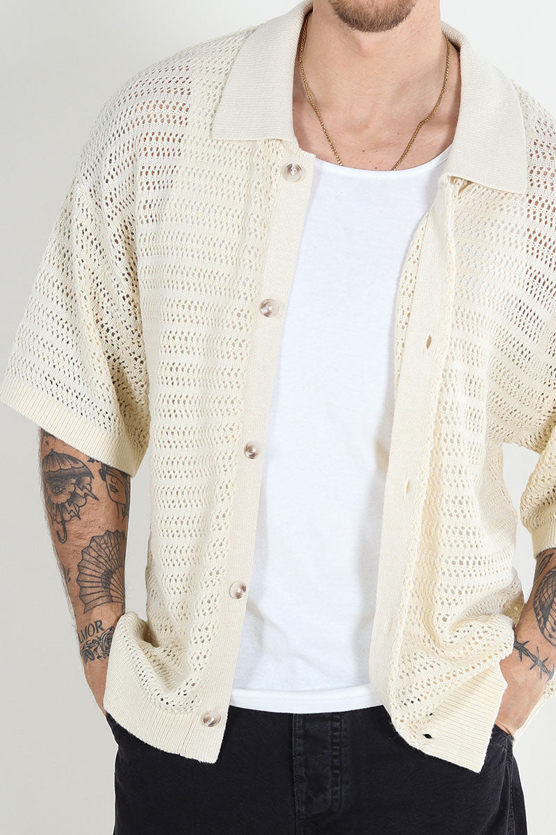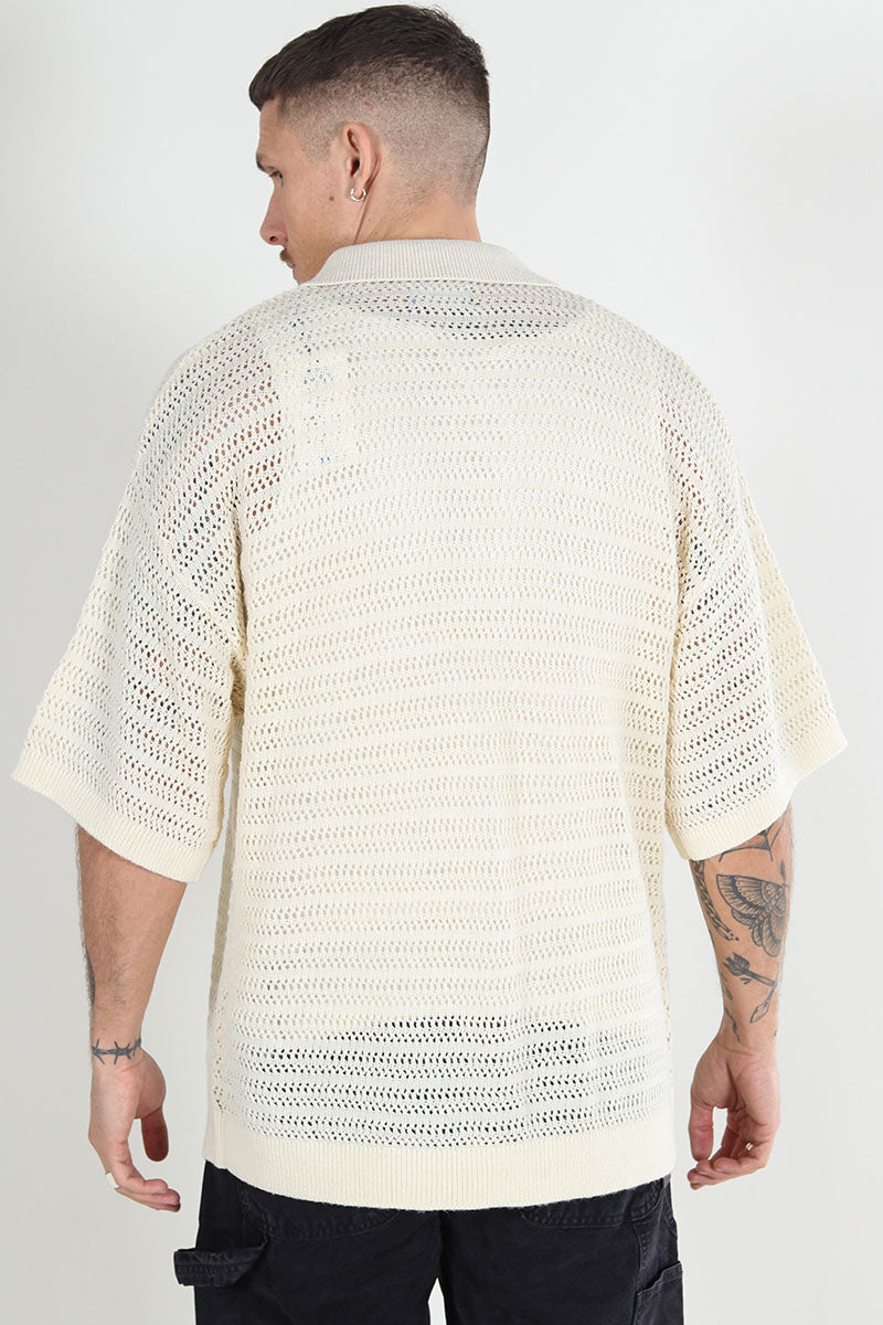 Club Knit Polo Cardigan Egret