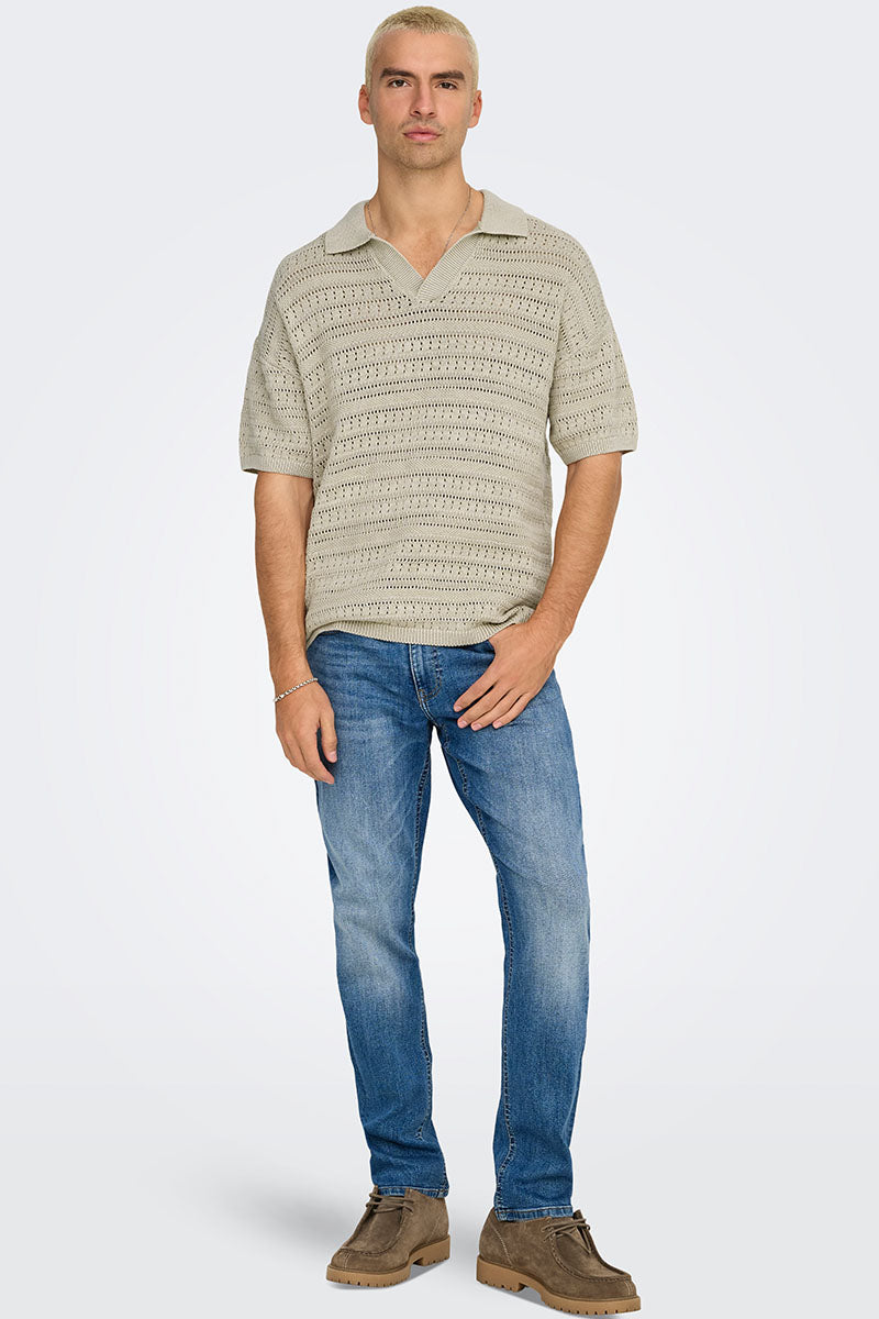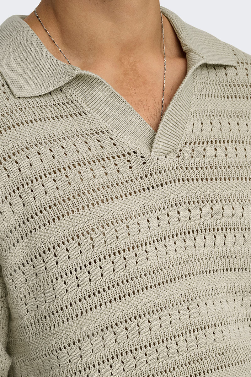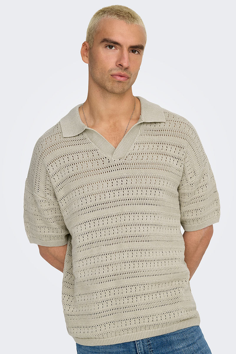 Grayson SS Chocket Knit Polo Silver Lining