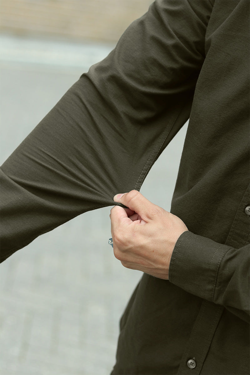 Val Oxford Stretch Hemd LS Forest Night