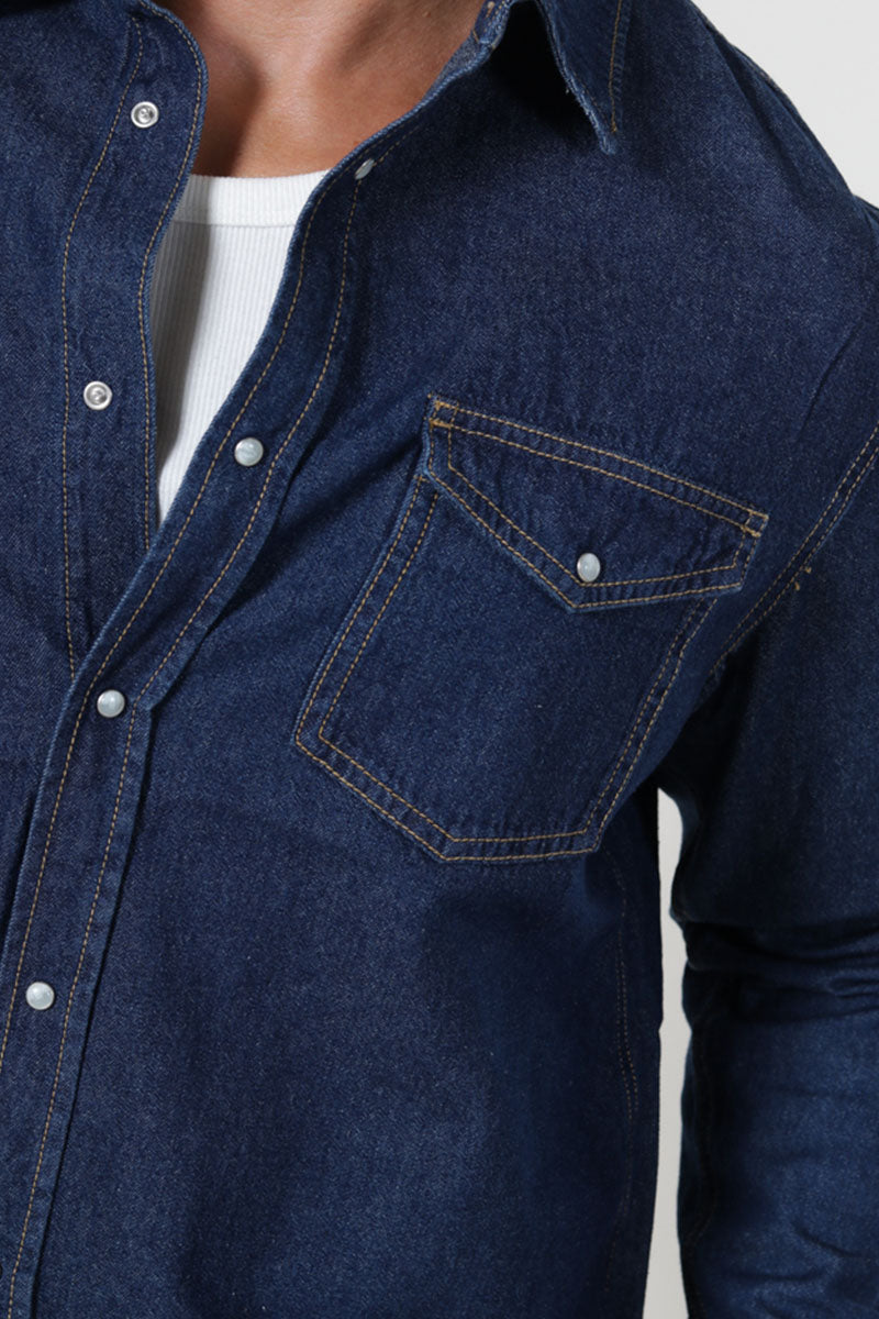 Bane Regular Fit Denim Hemd Dark Blue Denim