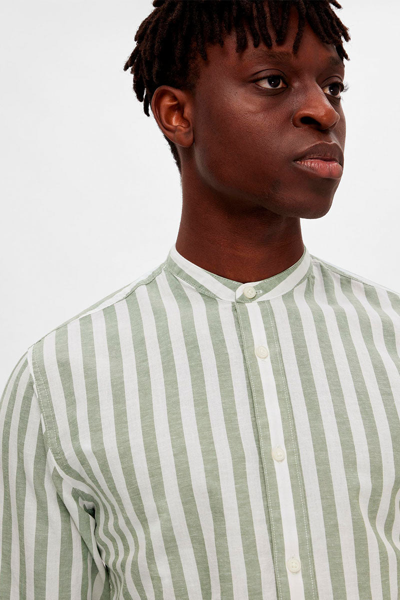 SLHSLIMNEW-LINEN Hemd LS BAND W Desert Sage Stripes