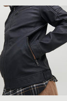 Diese Jacke überzeugt durch ihr sportliches Design mit einem Biker-Kragen und einem Reißverschluss, die praktisch und stilvoll zugleich sind. Die gesteppten Details verleihen dem Modell eine besondere Note und machen es zu einem vielseitigen Begleiter in der kühleren Jahreszeit. Gefertigt aus 100 % Polyester mit Polyurethan-Beschichtung, bietet die Jacke eine langlebige und pflegeleichte Oberfläche, die bei Bedarf einfach gereinigt werden kann.