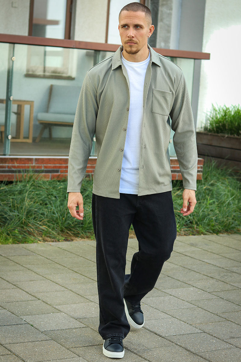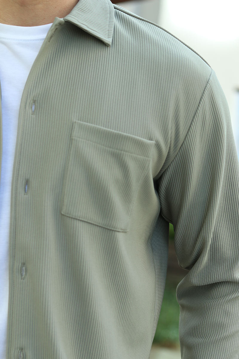 Relax Plisse LS Hemd Vetiver