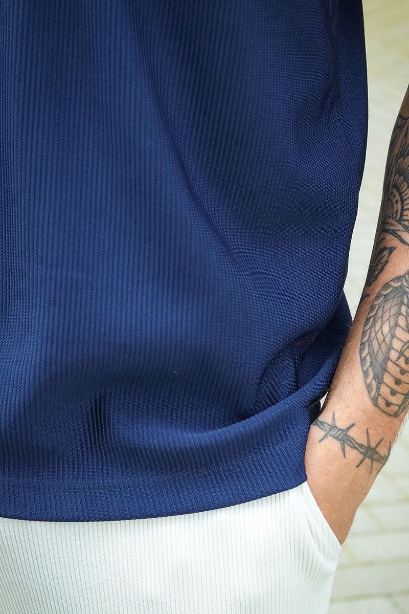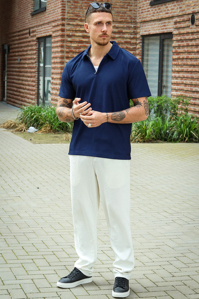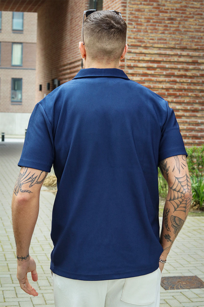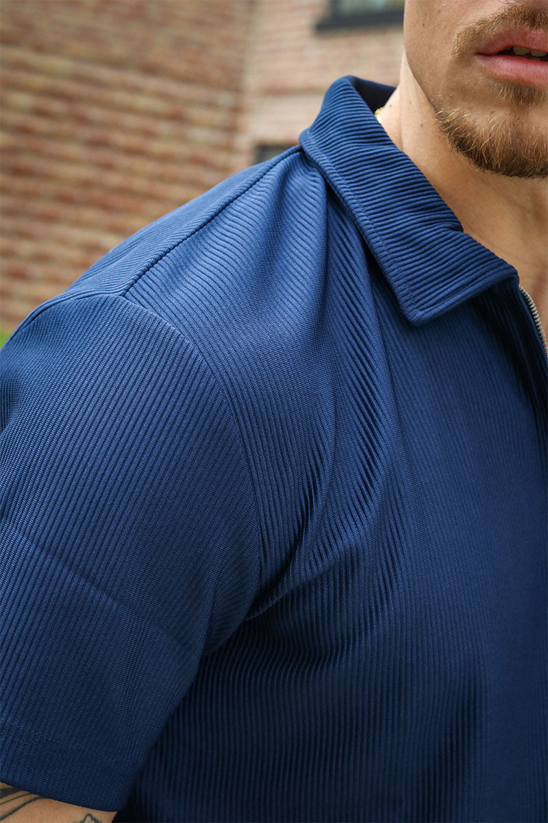 Relax Plisse Half Zip SS Polo Black Iris