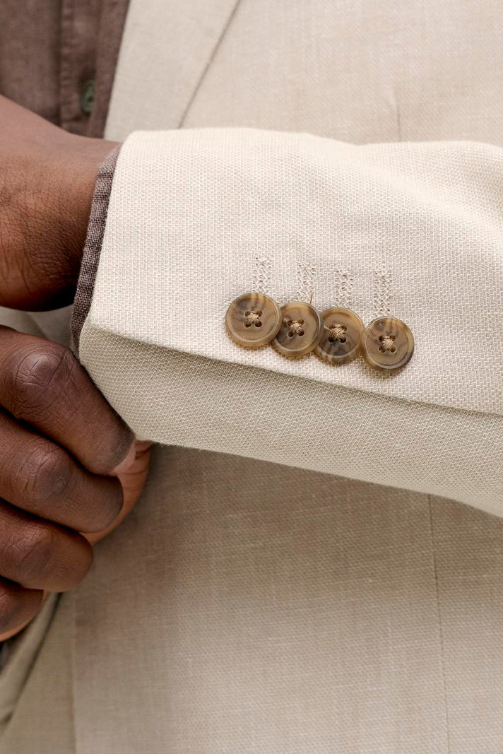 Dieser sommerliche Blazer aus einer Mischung aus Baumwolle und Leinen kombiniert natürlichen Tragekomfort mit einem eleganten Slim-Fit-Schnitt. Die dezente Farbe „Ancient scroll“ unterstreicht seinen klassischen Charakter, während der Reverskragen und die geknöpften Manschetten dem Blazer eine stilvolle Note verleihen. Mit einem Knopfverschluss und praktischen Taschen ist er sowohl schick als auch funktional – perfekt für formelle Anlässe im Frühling.