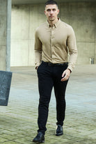 Theodore LS Stretch Hemd Dark Beige