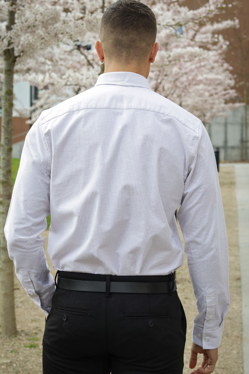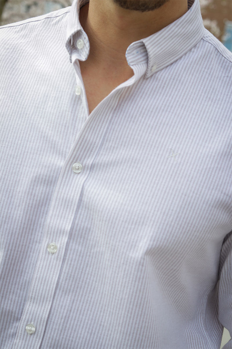 Oxford Stretch Stripe L/S Khaki Striped