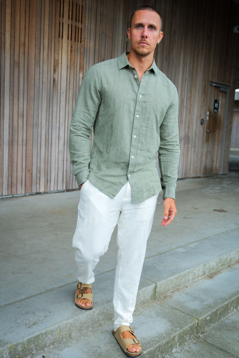Caiden LS Linen Hemd Swamp