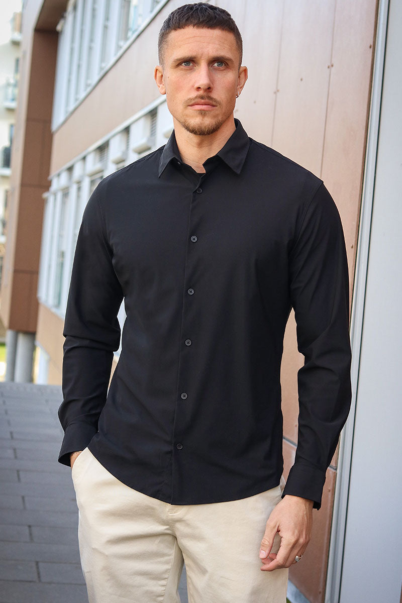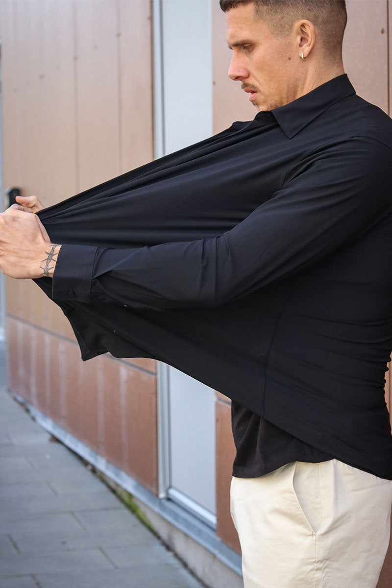 Active Muscle Fit Stretch Hemd Black