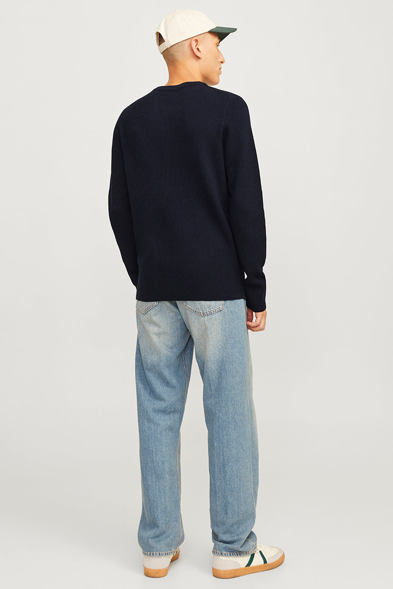 • Dunkelblauer Langarm-Strick im Strukturfit