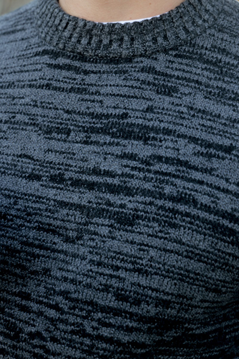 - Schwarz und dunkelgrauer Langarm-Strickpullover