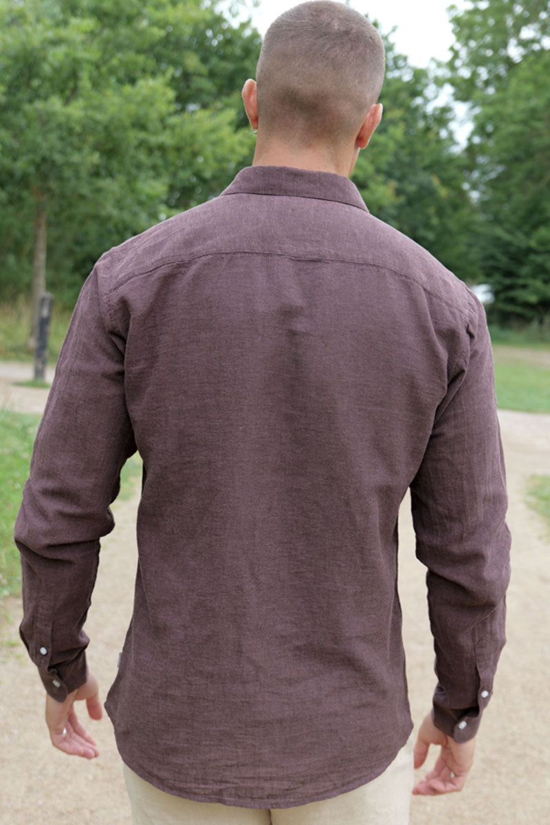 Caiden LS Linen Hemd Coffee Bean Peppercorn