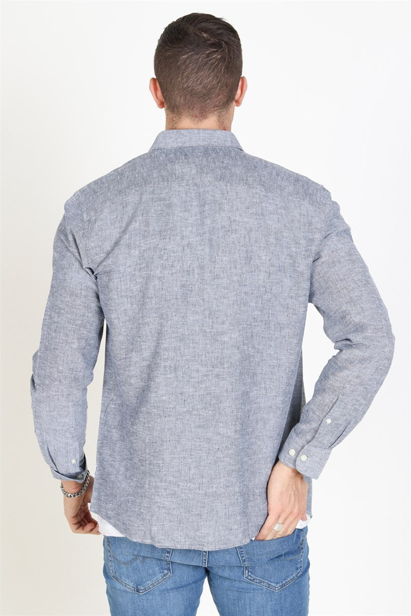 Caiden LS Linen Hemd Dress Blues
