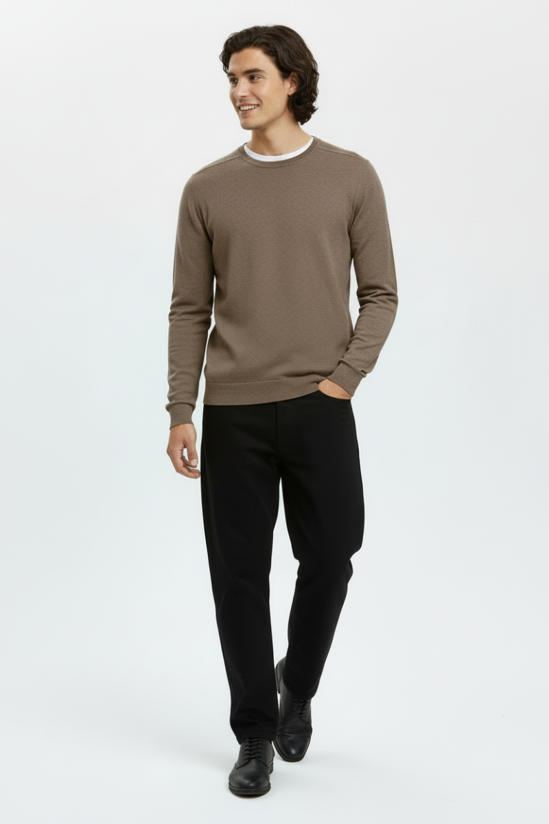 Dieser Pullover mit Rundhalsausschnitt bietet eine zeitlose und bequeme Wahl für die Alltagsgarderobe. Er ist in einem harmonischen Teakton mit Melange-Detail gehalten und zeigt sich in einer regulären Passform mit langen Ärmeln und gerippten Bündchen, die für zusätzlichen Komfort sorgen. Durch das gestrickte Material liegt der Pullover angenehm auf der Haut und eignet sich ideal für die kühleren Herbsttage.