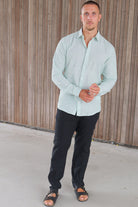 Caiden Life LS Solid Linen Blend Shirt Quiet Green