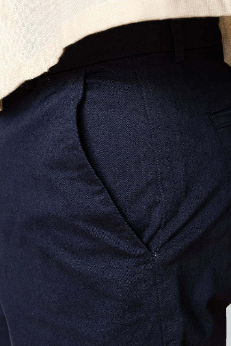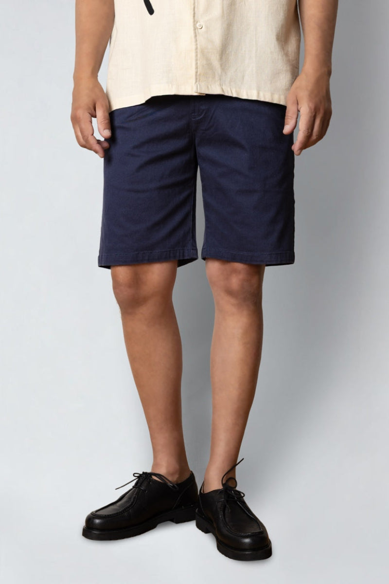 Diese Mitchell Twill Shorts für Herren sind ideal für Frühling und Sommer. Der leichte Stoff mit einem hohen Baumwollanteil sorgt für ein angenehmes Tragegefühl und gute Atmungsaktivität. Ein kleiner Elastananteil garantiert eine bequeme Passform und Bewegungsfreiheit, perfekt für warme Tage. Die klassische navyblaue Farbe macht die Shorts vielseitig kombinierbar und modisch zeitlos.